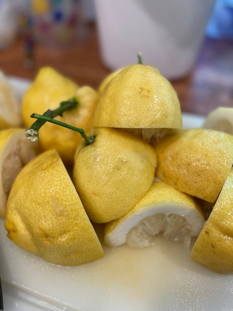 1 and 1/2 cups of lemon juice (about seven juicy lemons)