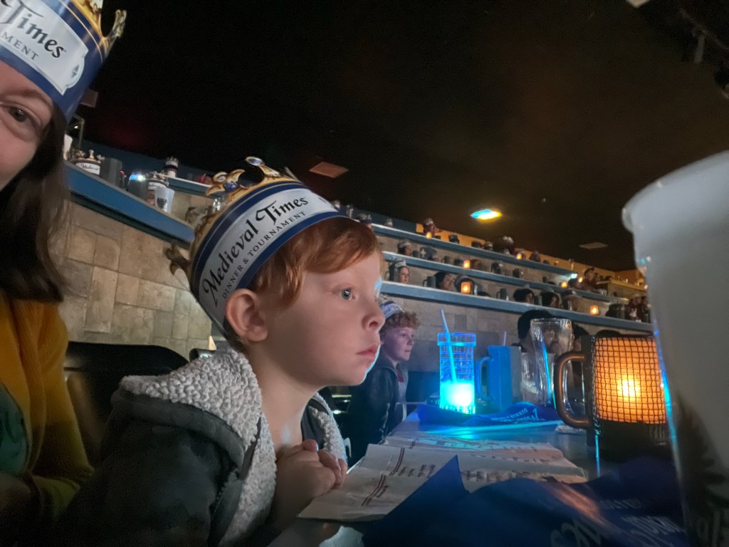 We also went to Medieval Times that week, compliments of the grandparents. Jonny took a while to warm up to the noise and lights, but all three boys ended up having a blast. This was another expensive outing, and not something I see us doing again until we have grandkids (ha!).