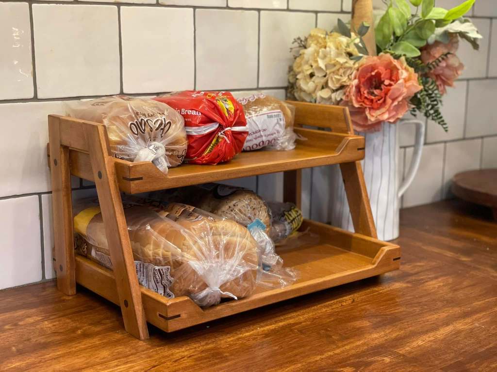 This shelf, however, is my pride and joy. I had a very specific vision of what I wanted for our bread shelf, and could NOT find one that was exactly what I wanted. So hubby built this one for my birthday this year, and it’s PERFECT!