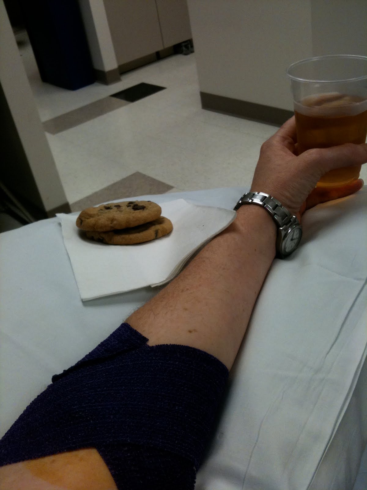 Here’s something you may not hear very often: I had the BEST blood donation last Friday! I really did. Thanks to Brooke and Robin’s suggestion, I went to CHOC instead of our usual donation place, and I can’t believe how much better of an experience it was (I had to donate before getting my vaccines done today, since you can’t donate once you get them). For one: they have you hold a bag of hot water before they prick your finger, which makes it easier to test your iron level (especially for people like me who have freezing cold hands and who usually take quite a while for them to get enough of a sample). Second: they actually give you some sort of liquid anesthesia on your arm so you don’t feel even the slightest prick! See, the whole process of donating doesn’t bother me, the only thing I can’t deal with is watching the needle go in, so at that point I have to look away. Which was great in this instance, because once I turned to look, there were definitely some spillage issues. But since I didn’t feel anything: no harm, no foul! Plus, all the people that worked there were super nice and attentive. It’s sad I found them just as I’m leaving to Haiti, which means I won’t be able to donate for a year after I get back!