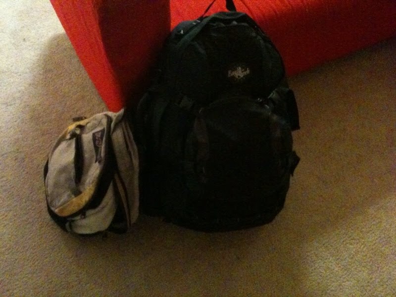 Thanks to some good tips from my mom, I was able to pack everything into my (ahem, Robin’s) backpack, and my smaller backpack which is what I will be taking on the plane with me. I put most of the art supplies I’m taking (thanks to Erik and Marisela for their help on purchasing these items) in my backpack, since they’re pretty light and I had to save an extra room on my check in luggage for all those liquid articles I can’t carry on. So, minus the sleeping bag which I still have to stick in a plastic bag (and for which I’ll probably get charged extra baggage), this is what I’m taking: