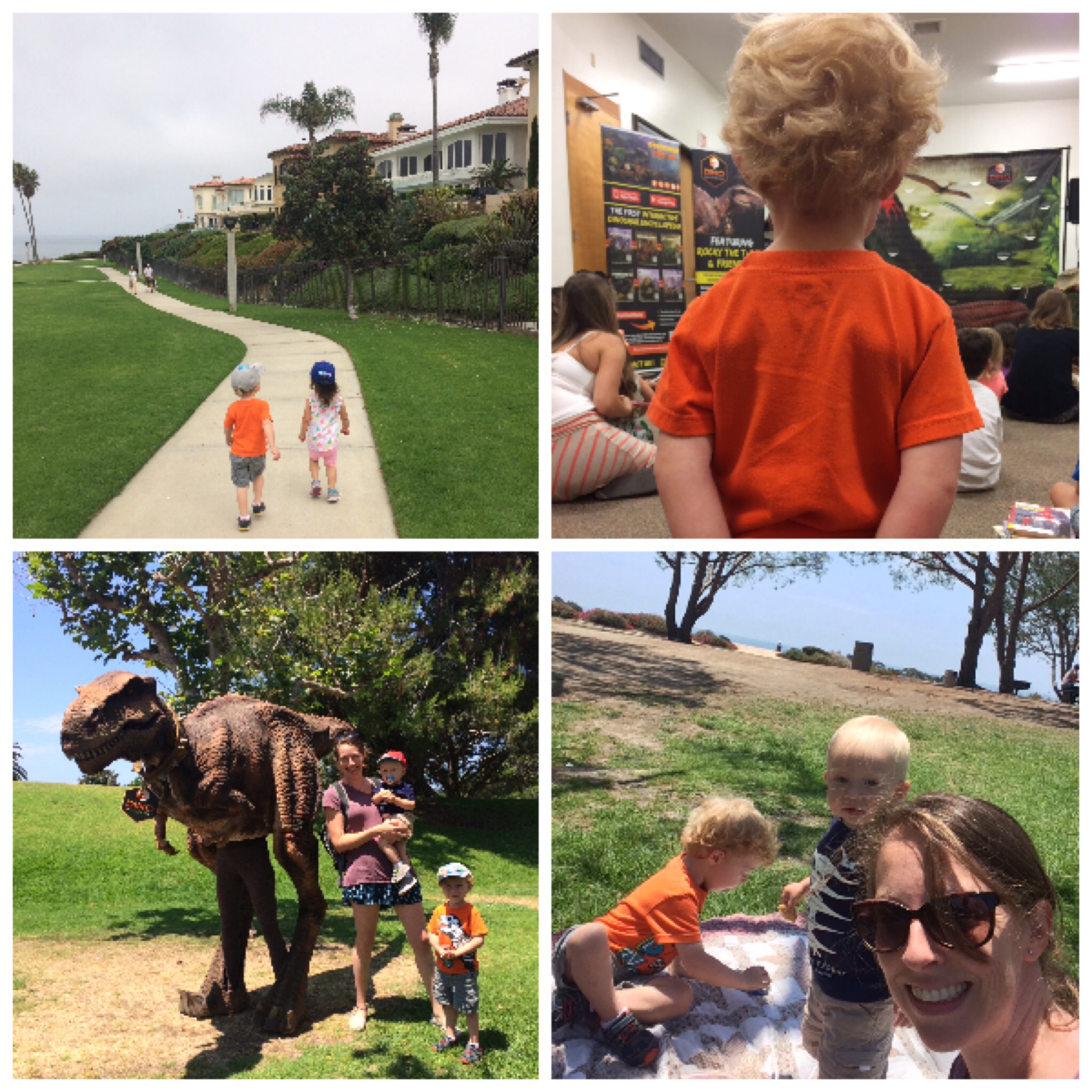 The OC Public Library had quite a few things going on at the different libraries, so I planned ahead for one at the Dana Point library: Dina Days! To be honest it was way more academic than most of the little kids cared for, but I think Jake semi enjoyed it. I invited some neighbors to come along and we did a hike by the beach before the event, and I packed a good picnic to have with the boys after it was over. From the Dana Point library it was a super short drive to Lantern Bay Park which has a great view of the ocean, and plenty of shady areas to set out a blanket.