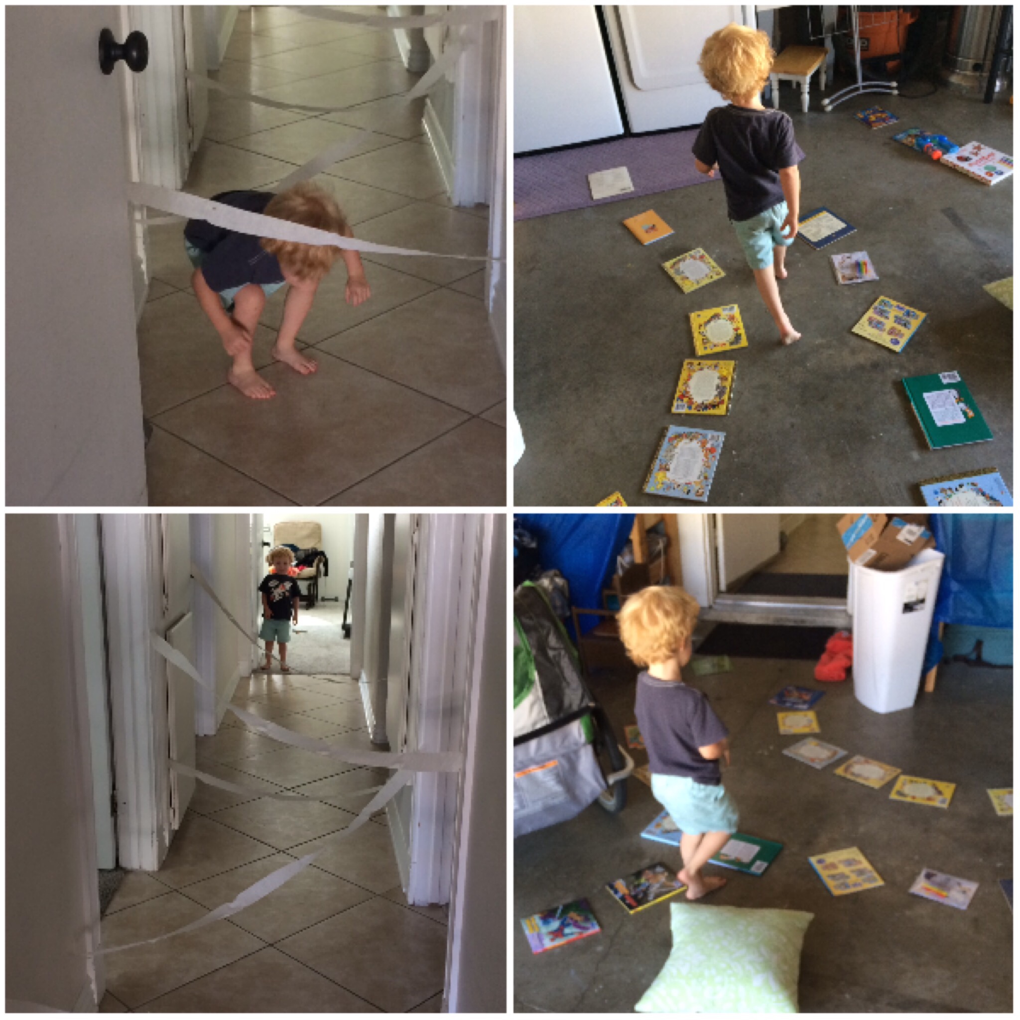 Another Pinterest find with mediocre execution: a home made obstacle course! I used my phone and timed Jake so he could try to improve it, which got him to do it at least 2-3 more times, haha. I will say, he got pretty good at going over and under the hallway obstacles, so practice DOES make perfect!