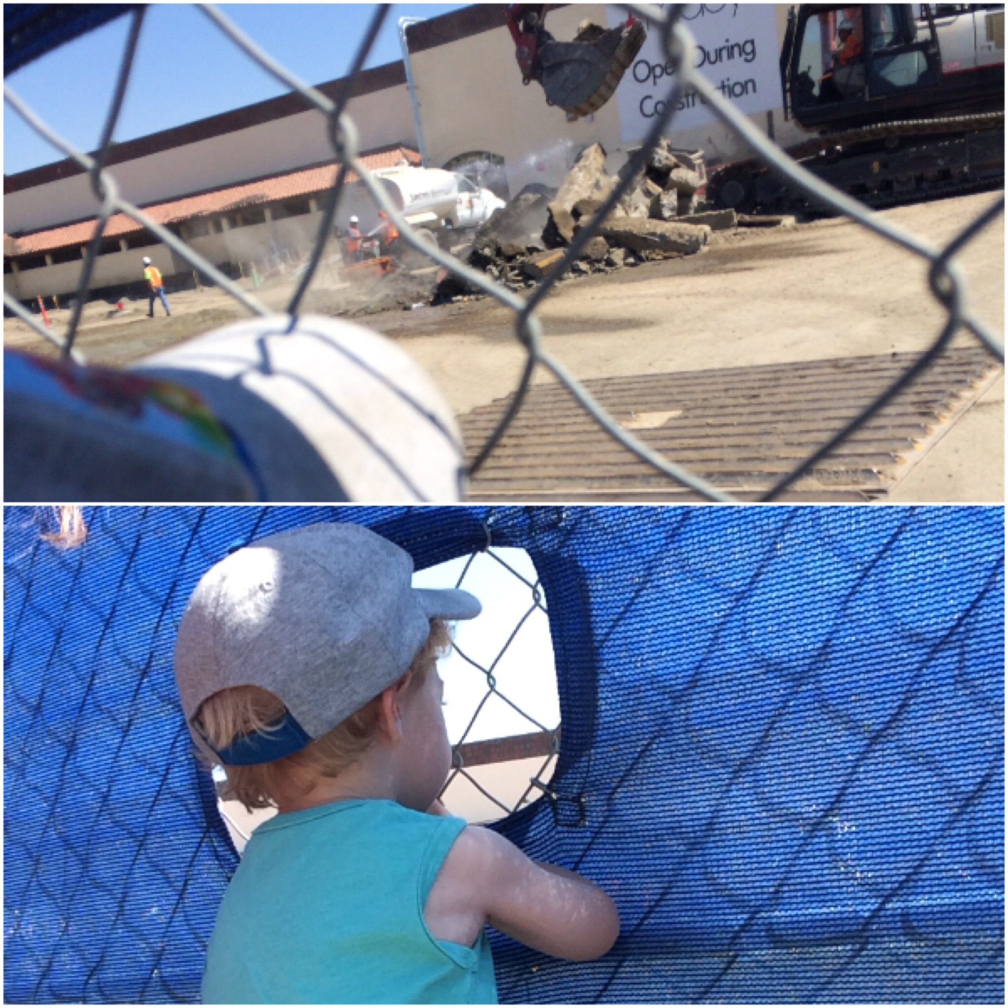 Another random trip I planned was going to see the construction going on at the Laguna Hills Mall. Or shall I say, Five Lagunas, formerly known as the Laguna Hills Mall? For those that don’t know, Jake is a huge construction fan, so I thought this would be something easy that he’d enjoy. I think Josh got a kick out of it too, and I was pretty grateful that the whole site had these little windows you could see through (although I had to carry Josh AND hold up Jake on my knee since he couldn’t quite reach the window).