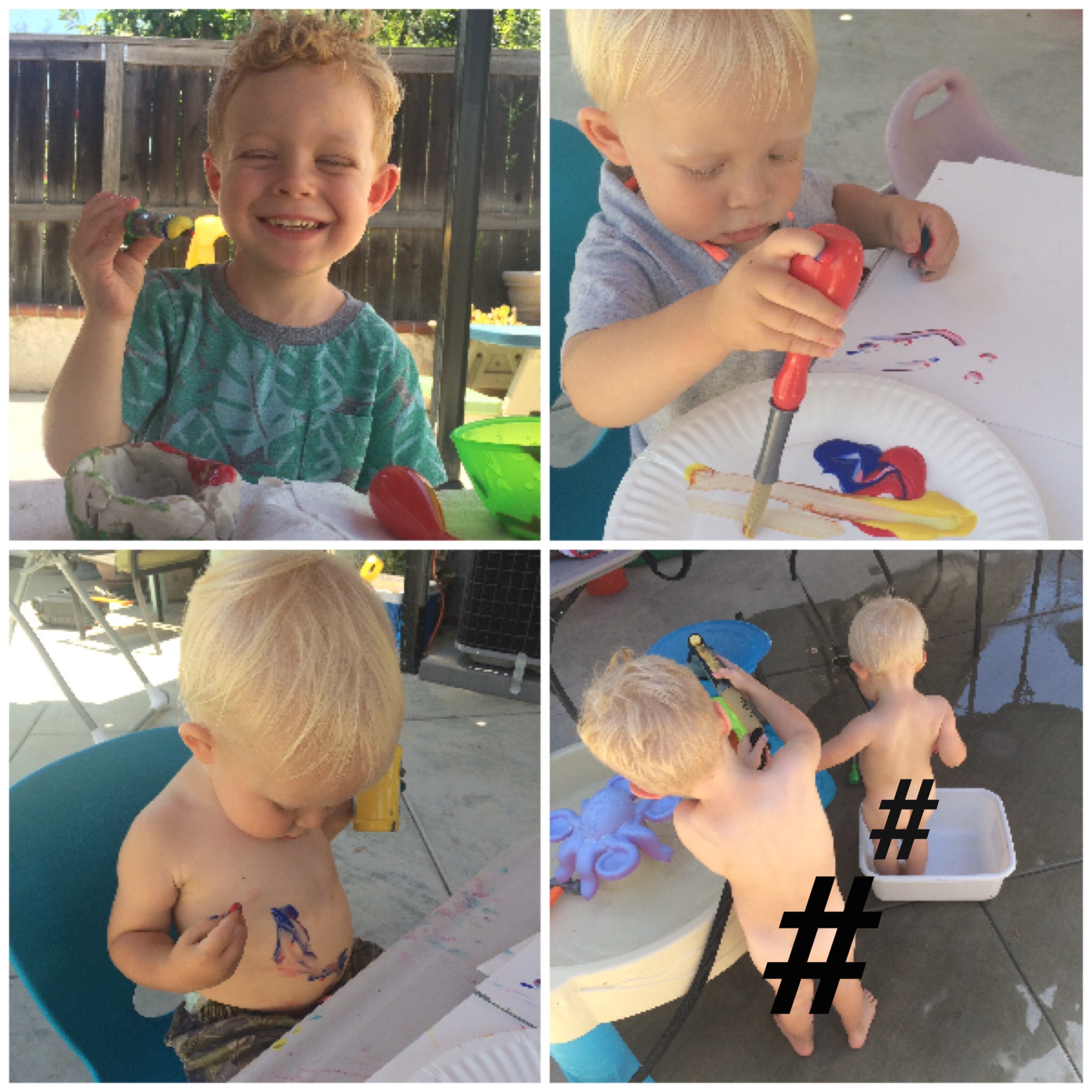 Who doesn’t like paint time? Once you realize they’re going to get paint everywhere anyway and just let them be, it’s not too bad :) Obviously Josh was not a fan of painting on paper, and Jake just thought painting on oneself was way better too.