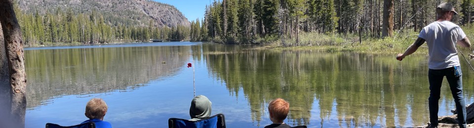 We drove down Hwy 120 to check out some of our favorite fishing spots, but again, no dice. Everyone was a bit tired, so we called it a day. Jonny and I enjoyed some reading time while the boys tried to fish.