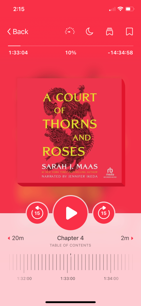 Oh. Em. Gee. I’d been seeing this book around the book socials for a while and decided to listen to the hype and added it to my Libby wait list. And boy oh boy am I glad I did. I’m not typically a fantasy reader, but I’m all in now. I’ve even pre-ordered the next book in the series and can’t wait to see what’s next! There were some VERY spicy scenes in this one.
