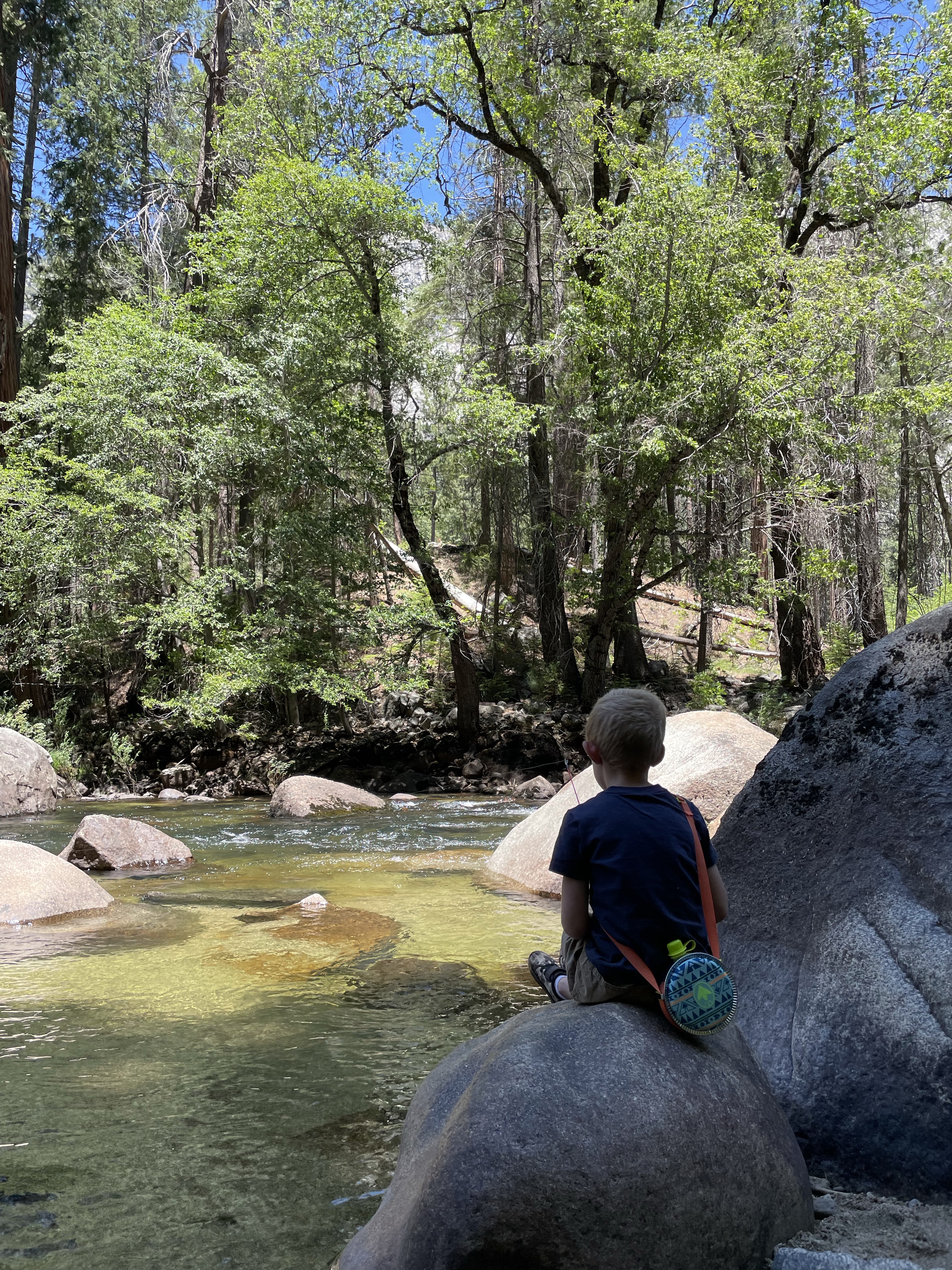 We drove down Hwy 120 to check out some of our favorite fishing spots, but again, no dice. Everyone was a bit tired, so we called it a day. Jonny and I enjoyed some reading time while the boys tried to fish.