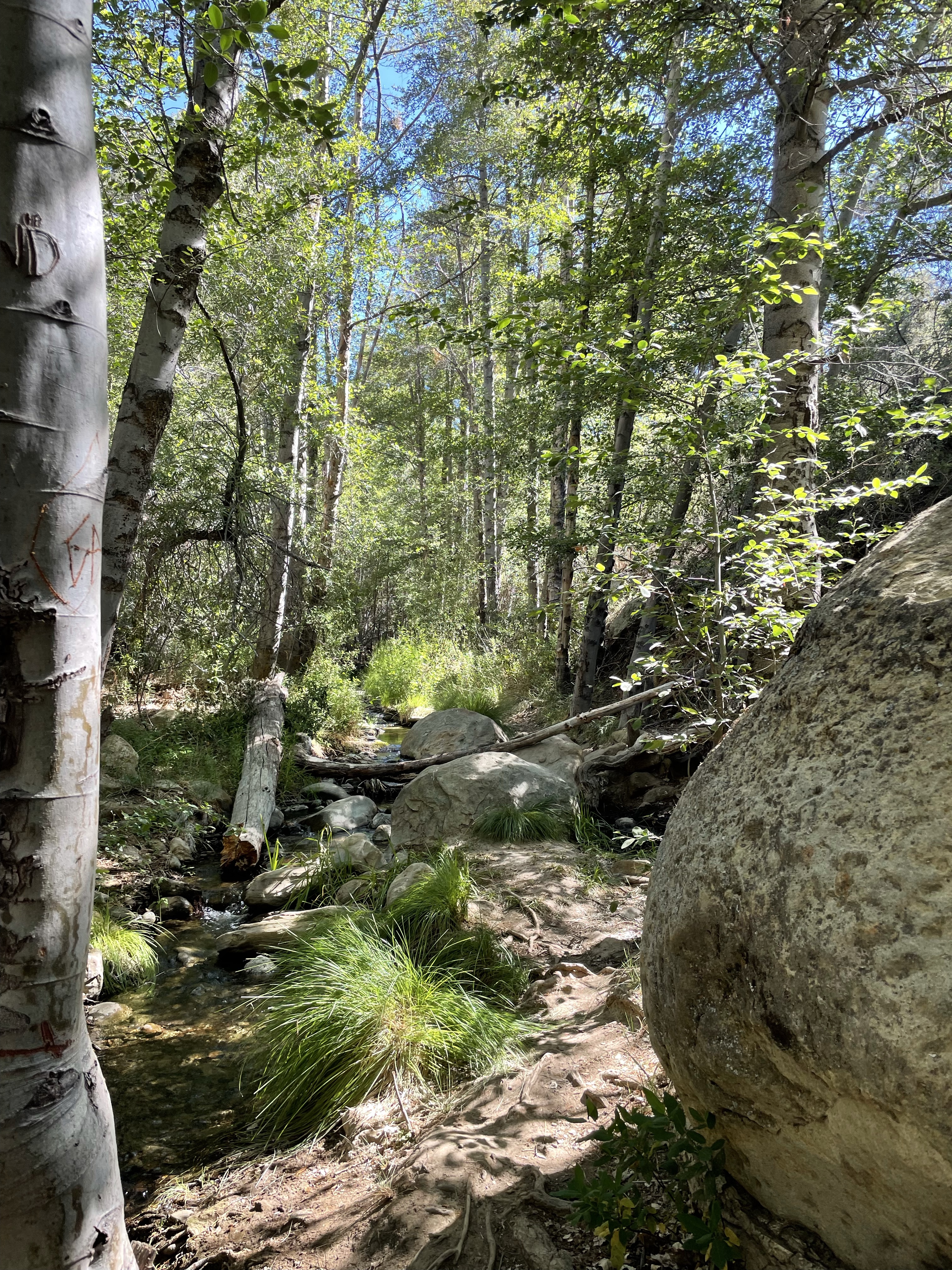 There was a promising section further down the lake, but it was packed. There were people fishing EVERYWHERE, and that just didn’t seem like it would work in our favor. We decided to head back towards Gull Lake, but turned around rather than continuing down the loop, since that takes you all the way around and back out to the 395. We got to see some pretty cool waterfalls on our way back!