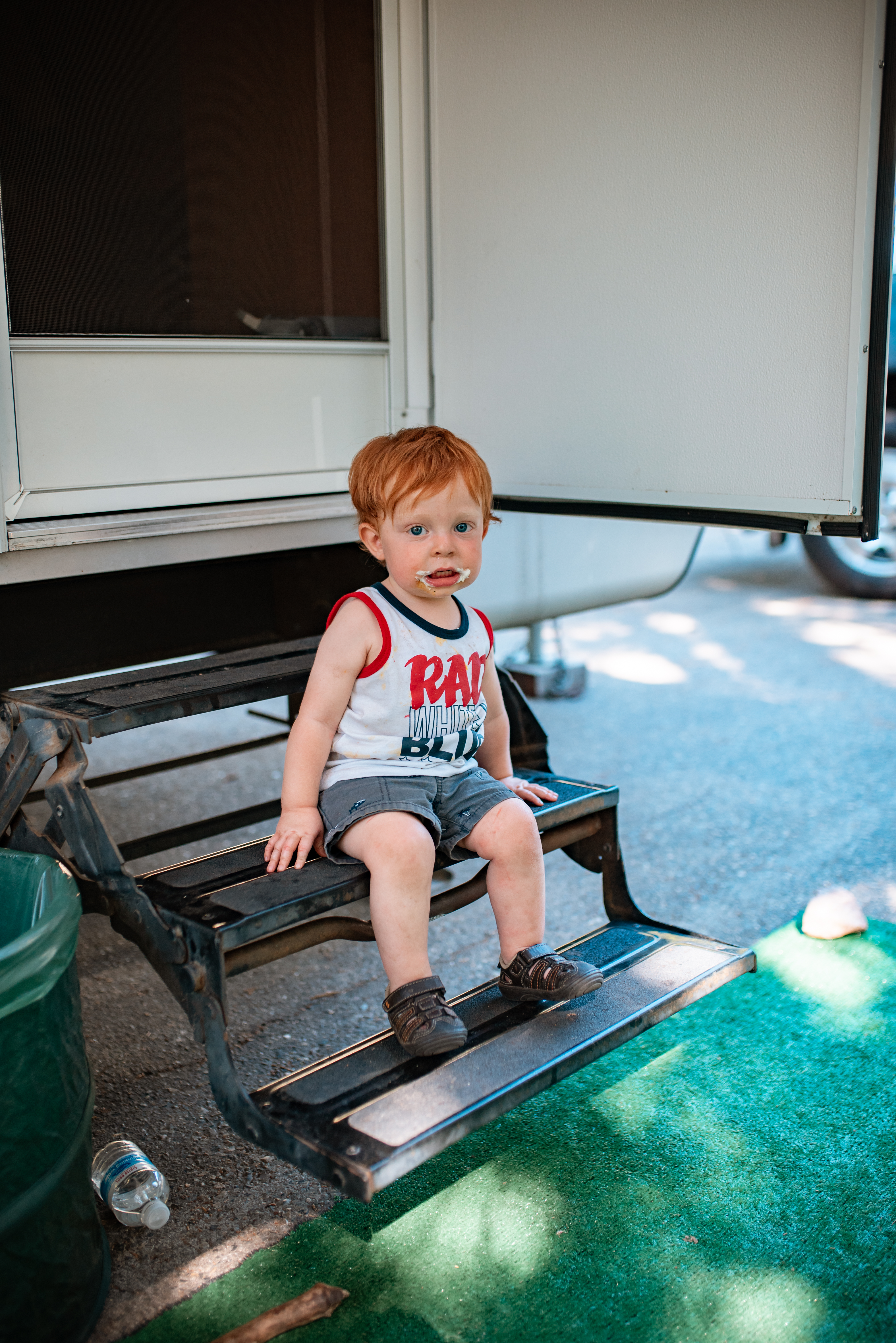 We arrived at our campsite around 7:30 p.m. with plenty of sunlight still available. Unfortunately we had some major electrical hookup issues with our trailers, so we couldn’t get the side pull out to work, so it was pretty tight quarters inside for the first couple days. Not to mention, we couldn’t reach the second bed (which we didn’t need until my in-laws joined us a couple days later) or the pantry. Not being able to reach the pantry/closet was a pain, and we ended up folding out that side of the trailer so we could jump in through that fold out (with a ladder). Not ideal, but it worked. Our oldest boy was stressing for a bit, so I had to keep reinforcing that although not ideal, we still had a place to sleep and were in a beautiful place. Everything else would either work out or we’d make do.