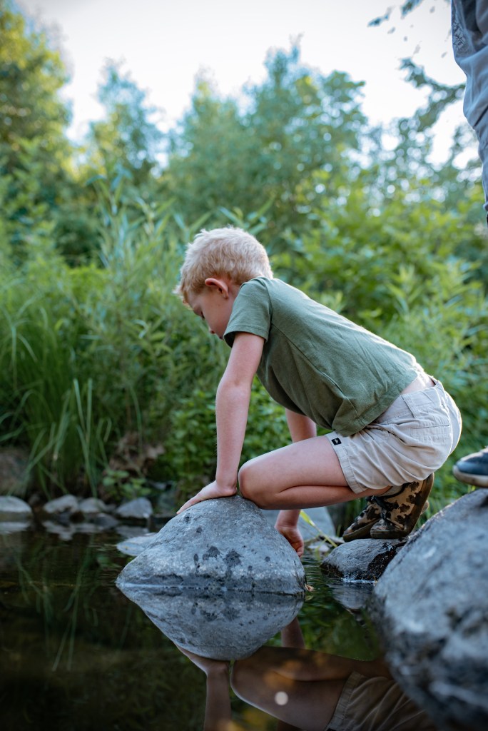 There was some weird yellow stuff floating in the water that I was concerned about at first (is it some weird fungi??), and I kept telling Jonny to stop playing with (because of course, he was sitting ALL up in it, and trying to gather and collect it). Thankfully someone nearby heard me saying something about it, and he informed me (very nicely) that it’s just pollen from the pine trees! Carry on, Jonny Boy, carry on.