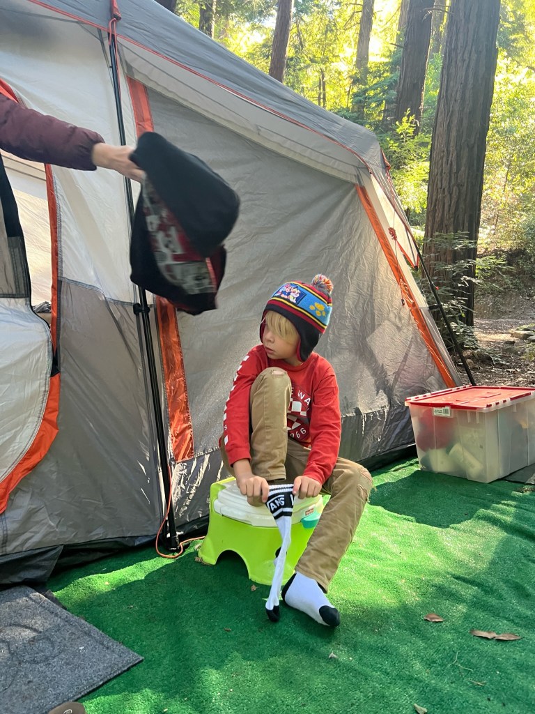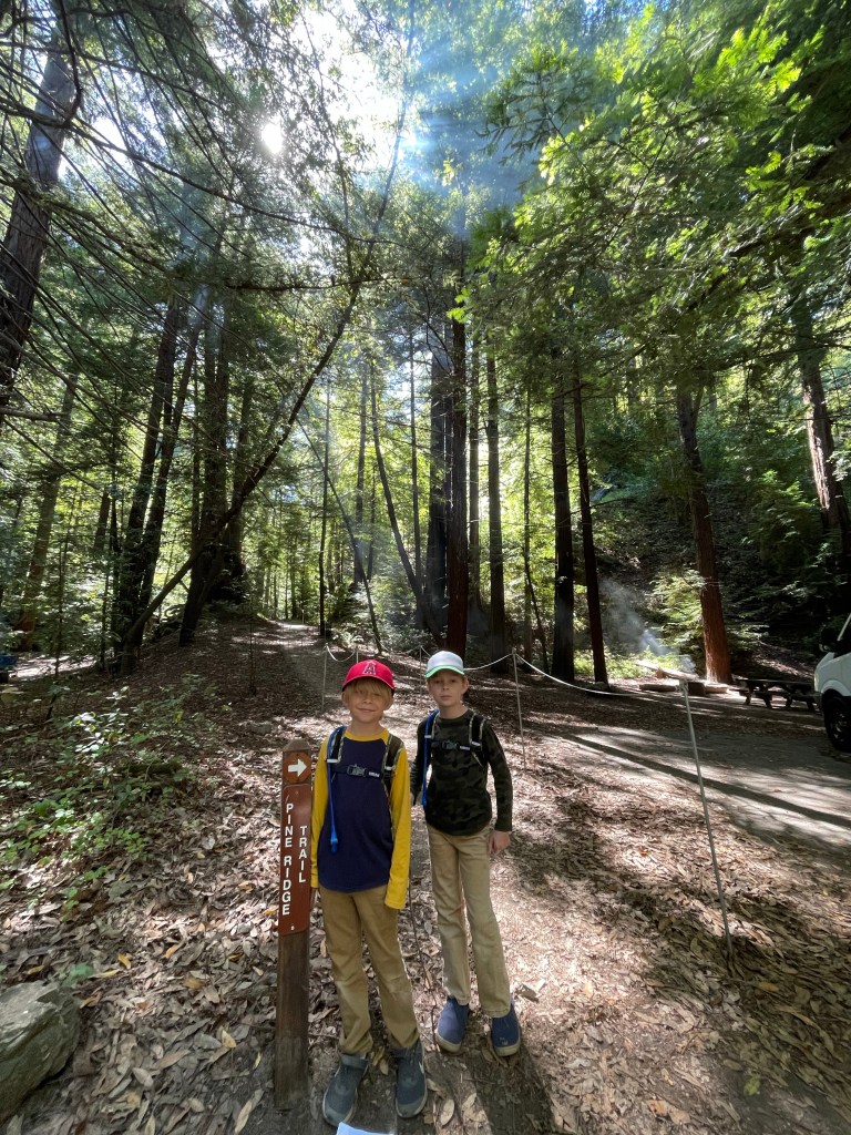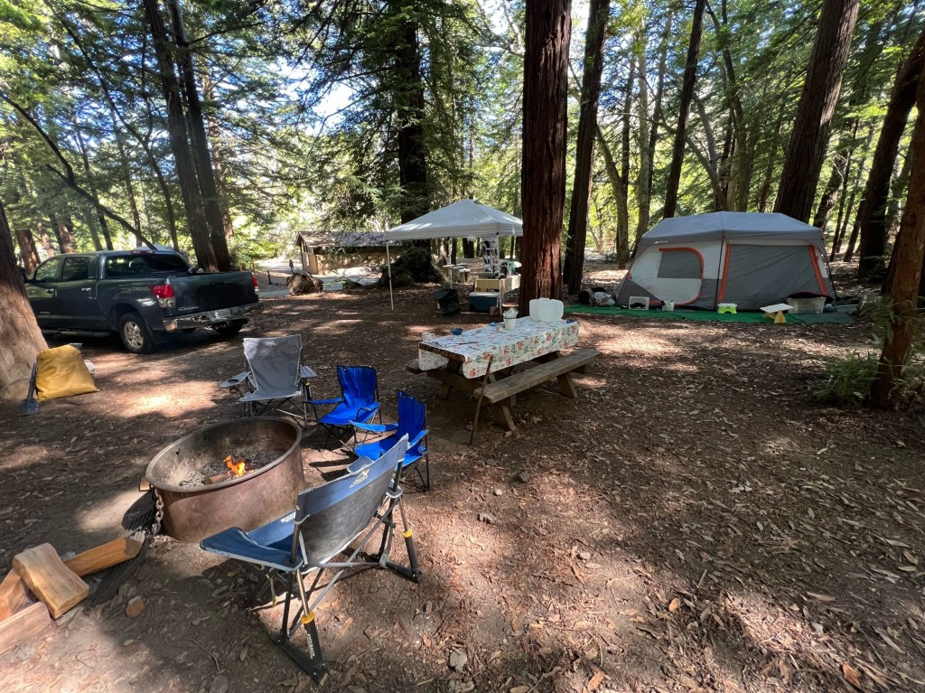 We camped at New Shady Rest Campground, and booked it through the Recreation.gov app. We were a little late on booking sites this season, but I think we still got a decent site. Bathrooms were a deciding factor this time around, so we skipped a lot of the campsites that are around or on the lakes, that don’t have vaulted bathrooms. This campground is right at the entrance of town, and very close to everything (Vons, coffee shops, sports stores, etc.). It was nice, on this trip, to be close to all the amenities we made full use of. The campsite is still surrounded by pine trees and definitely plenty of outdoor/nature feeling. There was definitely some traffic noise early in the morning, but none of the boys seemed to be affected by that (to be young and a deep sleeper!).