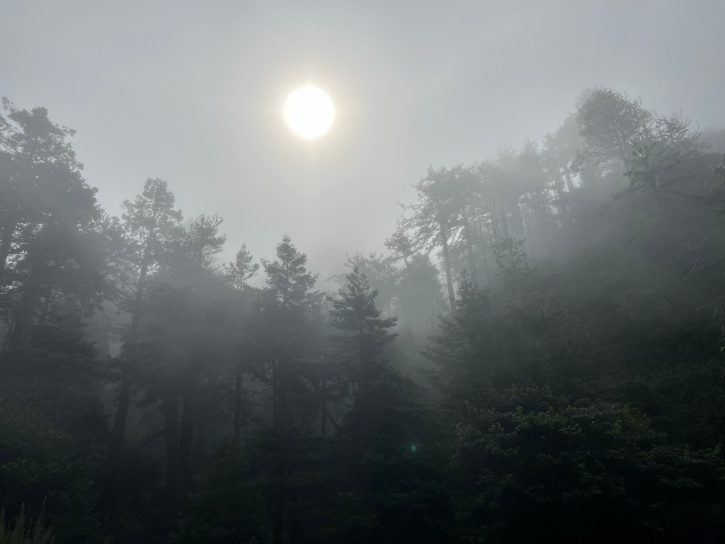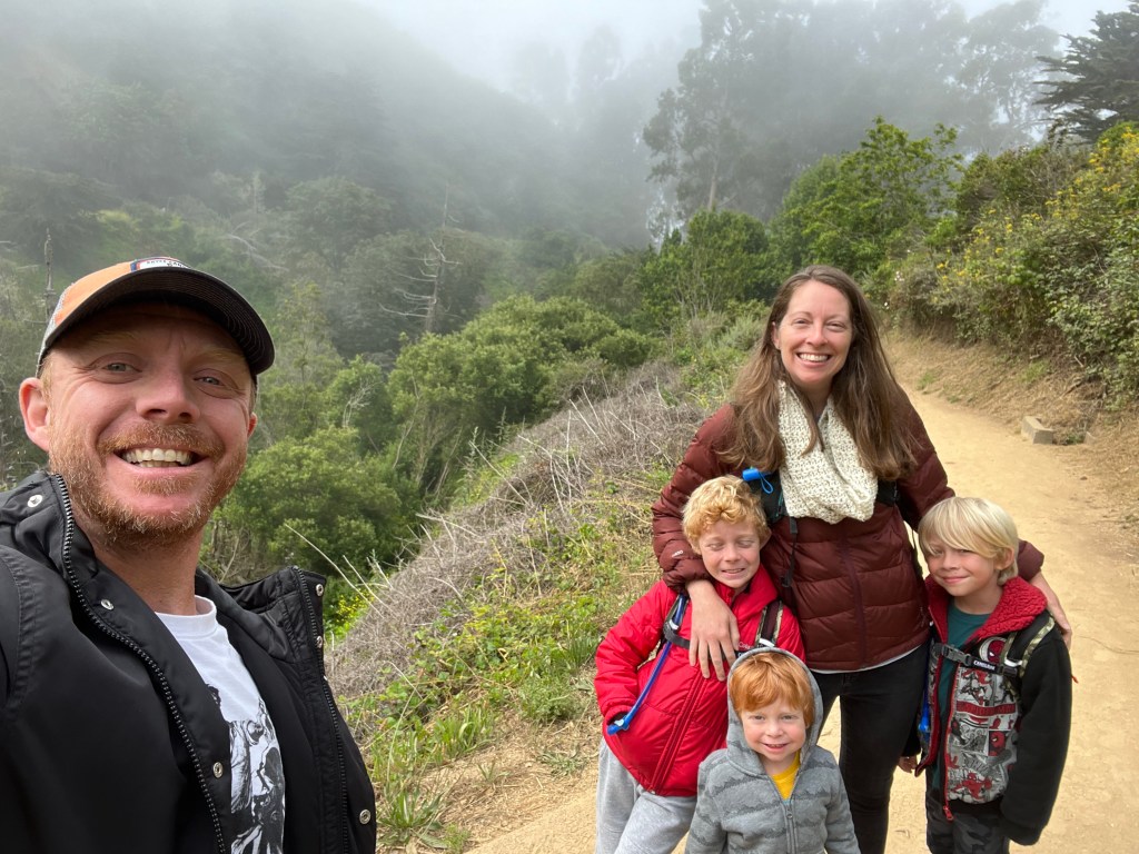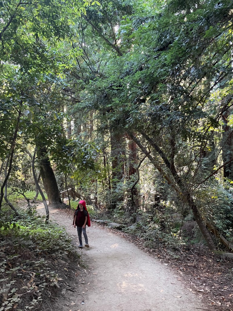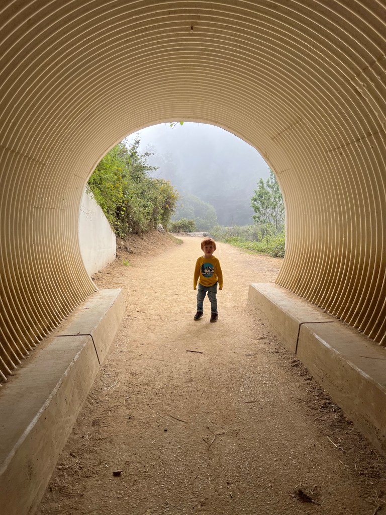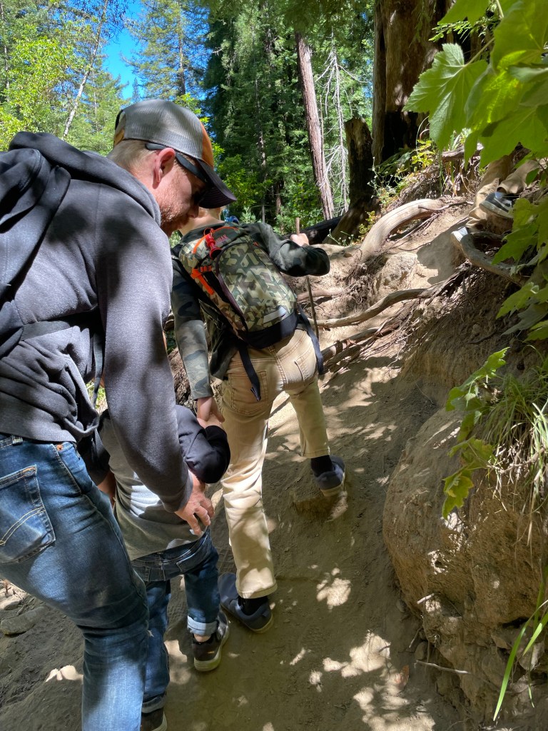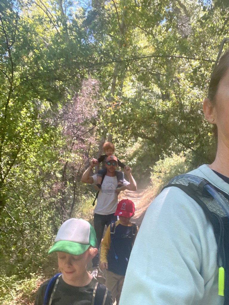 When we got back to our campsite, we decided to explore the trail that runs along our campsite. It follows the Sawmill Cuttoff road, and it was SO pretty. It’s about a mile each way. There was no one else around and we were slightly worried about bears, so we kept the kids pretty close, but Josh really enjoyed riding his razor on the trail (bikes would have been the chefs kiss, ha!). We stopped when we hit a skate park, which was a huge highlight for Josh. The smile on his face was pretty incredible. And the view for the rest of us was pretty spectacular. We did hear some thunder while at the skatepark, and saw some ominous clouds moving in, so we decided to head back to our campsite.