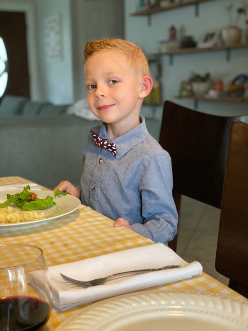 Easter was obviously very different this year. I was missing family, and the tradition of going to church. And the weather sucked. I dragged my feet through most of the day; I couldn’t even fight the boys to get dressed, so they stayed in pajamas all day. Until right before dinner when Jeff told them he needed their help and disappeared. The three of them came back out all dressed up and ready for our Easter dinner. My heart was so full. My eyes were pretty full of tears as well…